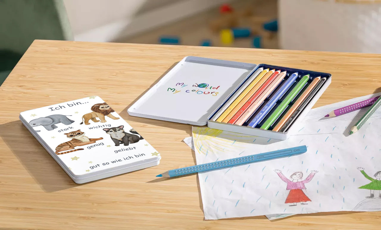 Jedes Positivitätsset enthält 12 Colour Grip Buntstifte und ein